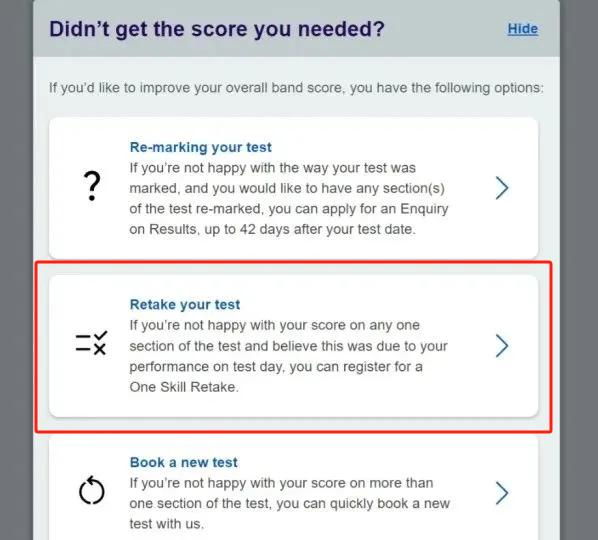 接下来我们需要选择See my options,查看自己是否有Retake your test的选项