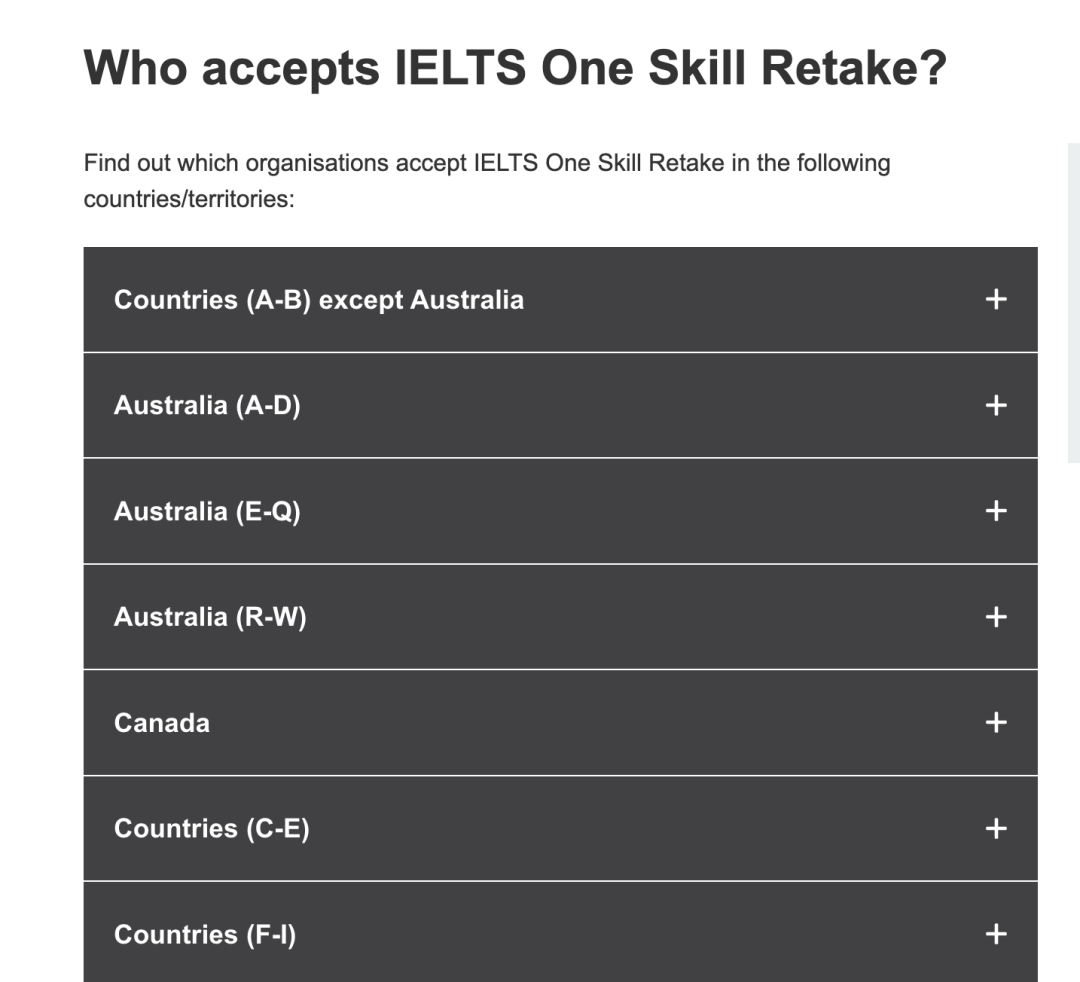 再有就是并不是所有学校都认可雅思单科重考成绩,官网已经整理了认可的院校。